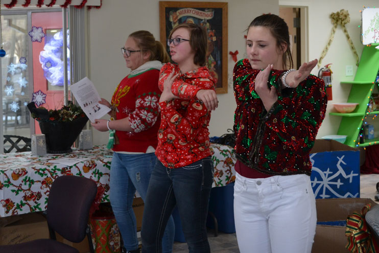 Lillian Duncan, 13, Holly Lake, 14, and Olivia Laughlin, 13, organized fitness packets for the seniors at Mansface Terrace, which outlined safe and effective exercise for senior citizens to do. They also crafted handmade mini sleds to give to the residents as Christmas themed gifts.