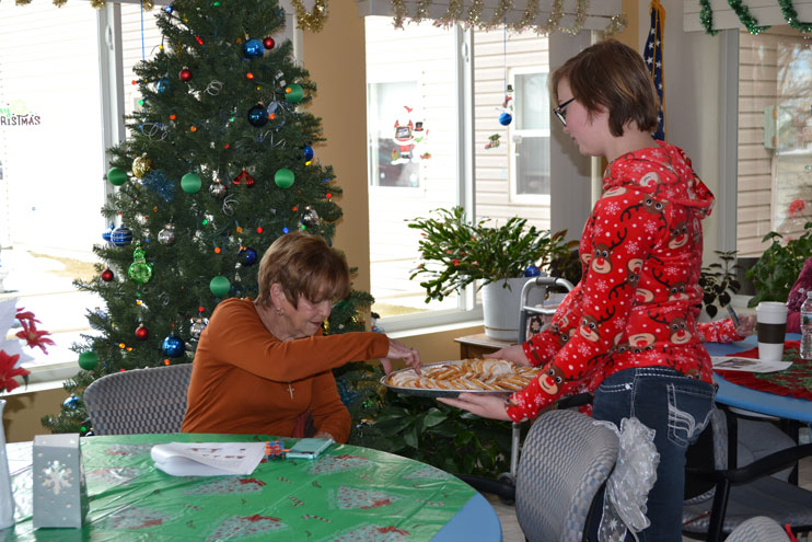 After presenting their project to the residents, the girls stuck around for a while to talk with the residents.