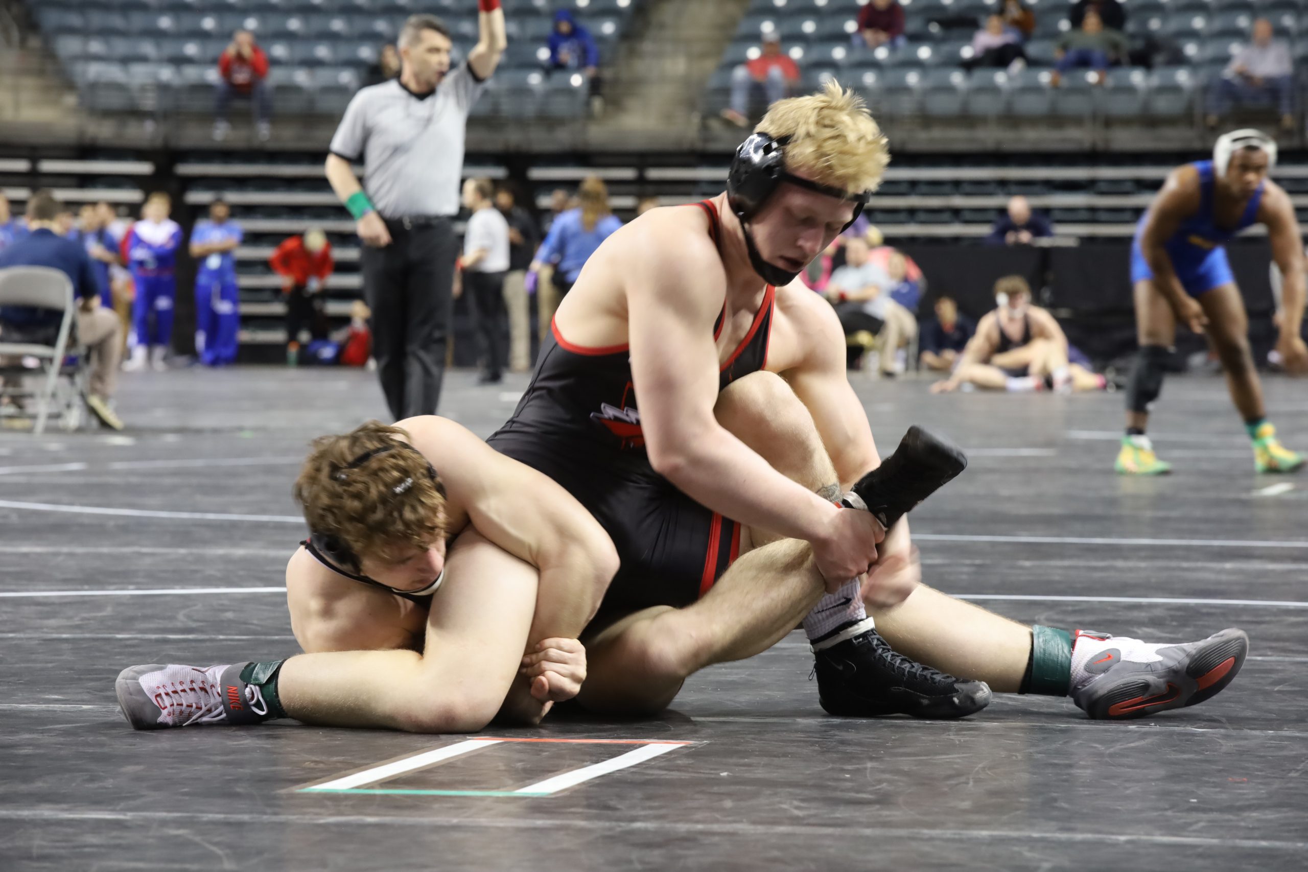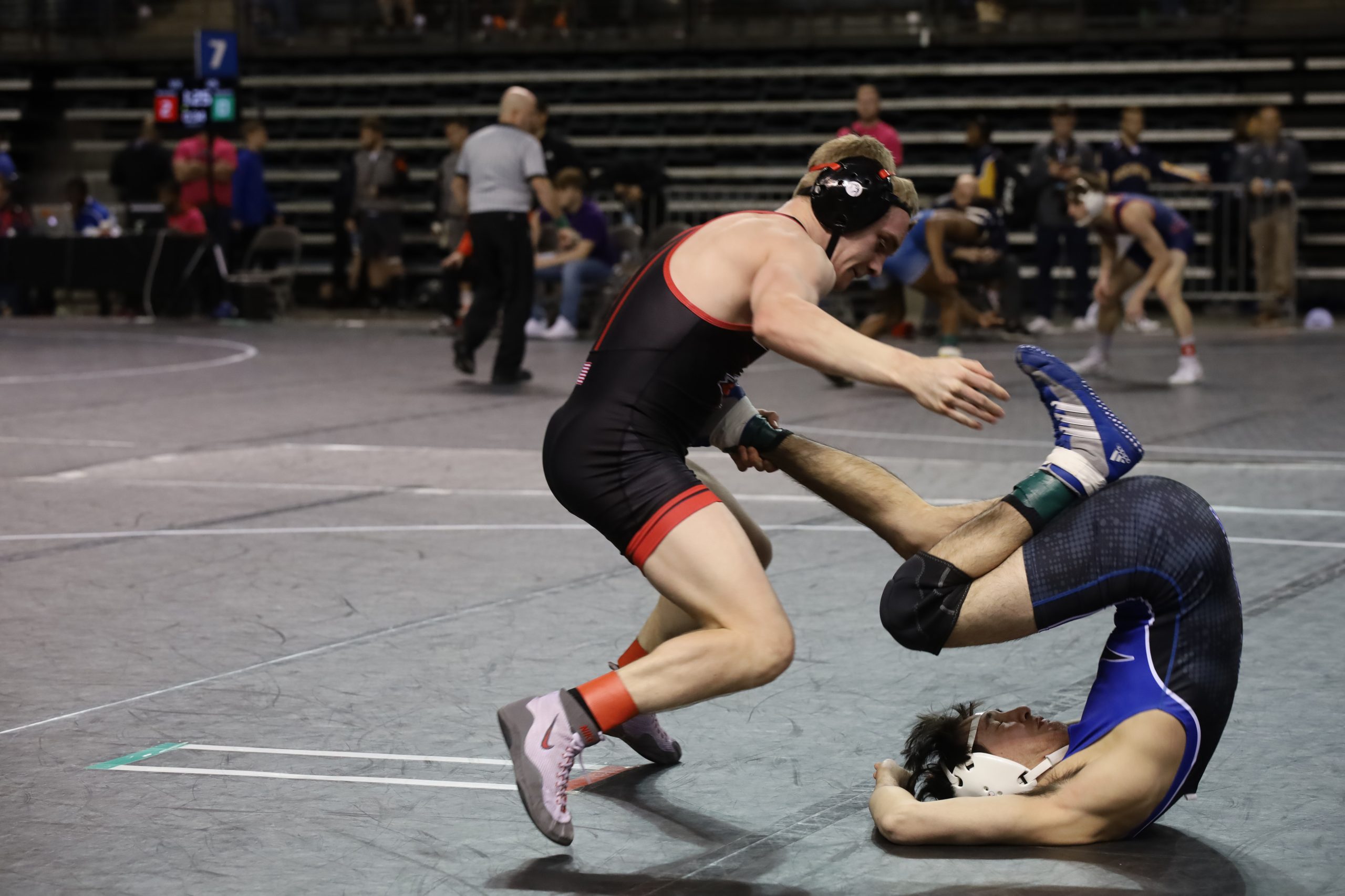 Landon Brown (heavyweight), Tucker Tomlinson (197), Jace Anderson (184), Andrew Nicholson (174), Anthony Herrera (157) and Kedric Coonis (141) remain in the chase for individual national titles. Joey Revelli (149) reached the third round in the consolation bracket. Dalton Stutzman (125), Jared Bird (165) and Kyle Evans (133) were knocked out of the tournament during the first session.