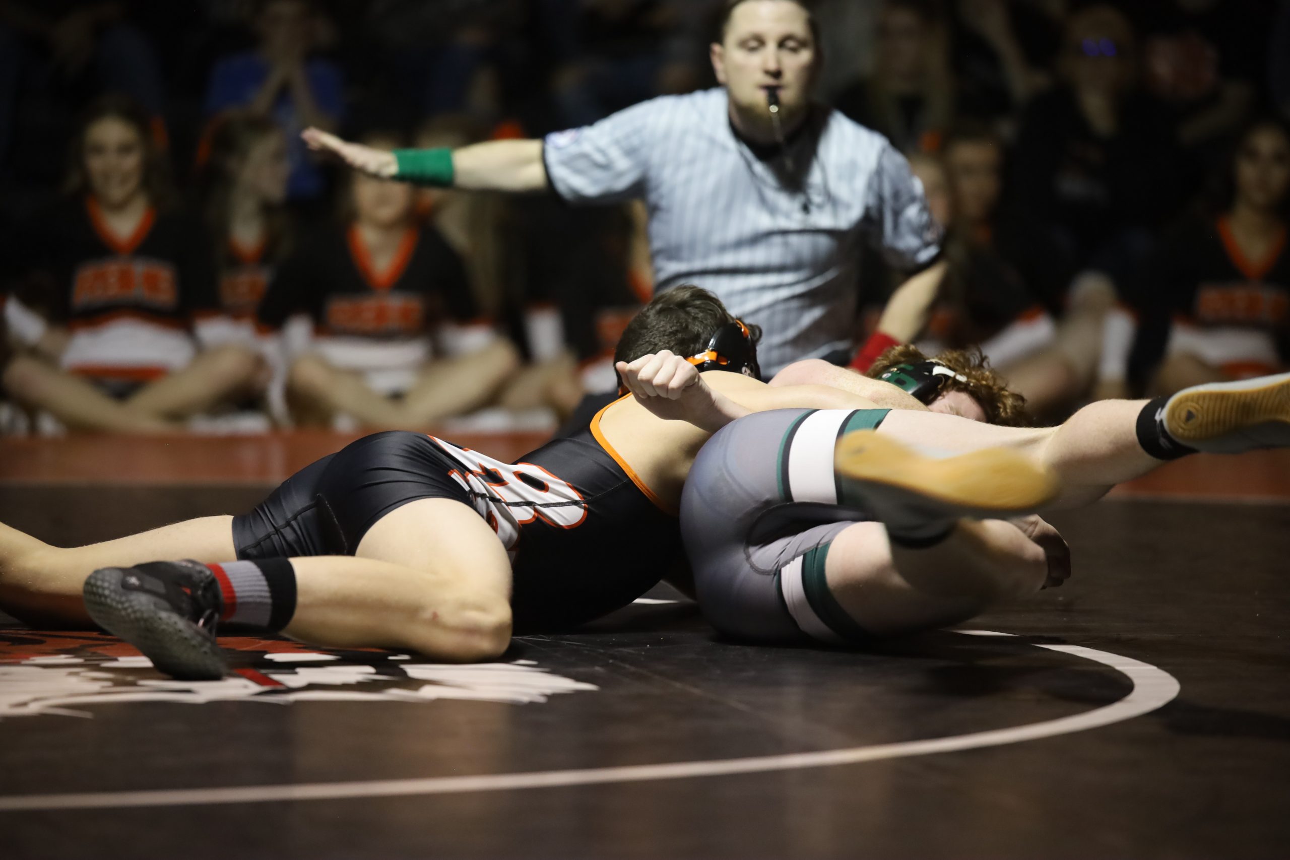 Five pins were recorded for the Wolves while the Tigers earned two pins of their own. Only three matches reached the third period during the dual between the two schools.