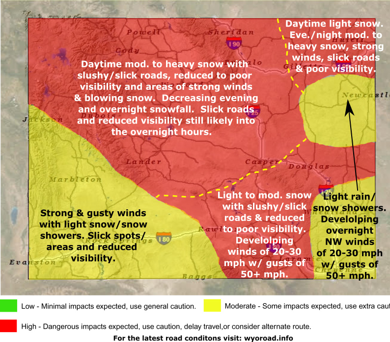 Meanwhile, the central and southern portions of the state are already seeing impacts from the storm. If you plan on traveling, be sure to check the Wyoming Department of Transportation’s website before heading out. For all the latest road information, visit wyoroad.info. For the latest forecast, click here.