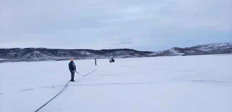 UINTA COUNTY — Uinta County firefighters had to run a lot of hose to extinguish a fishing hut fire yesterday afternoon near Evanston.