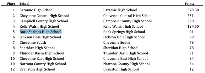 Rock Springs, along with 11 other schools were in attendance. The Lady Tigers were just one of the teams with the goal to knock off Laramie, however the Lady Plainsmen secured the state title for the fourth straight year in a row.