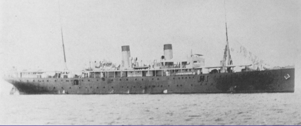 On April 7, 1917, the United States declared war on Germany and boarding parties of sailors and Marines led by Lieutenant W.A. Hall, USN, moved toward the raider in boats to seize the ship. When a boat from the Cormoran was seen headed for shore, Hall ordered Corporal Chockie to fire a shot across the boat’s bow – the first American shot of World War I. At first, the Germans ignored the warning, but after Chockie and another men fired several more shots into the water near the boat, its crew hove to.