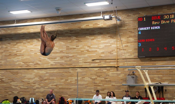 Ali Lange and Enshawntae Rall took first and second place, respectively, in the 1-meter diving.