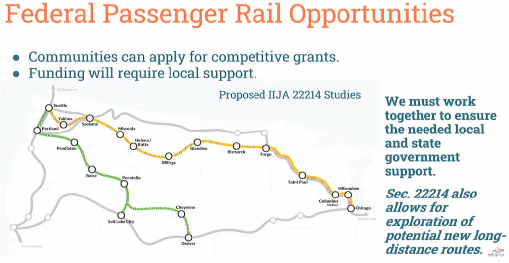 In October of 2021, the Rock Springs City Council approved a resolution supporting the restoration of Amtrak’s Passenger Pioneer Route. Hamilton said this is the route they are looking at closely. Now is the time to act because the funding is available, he said.
