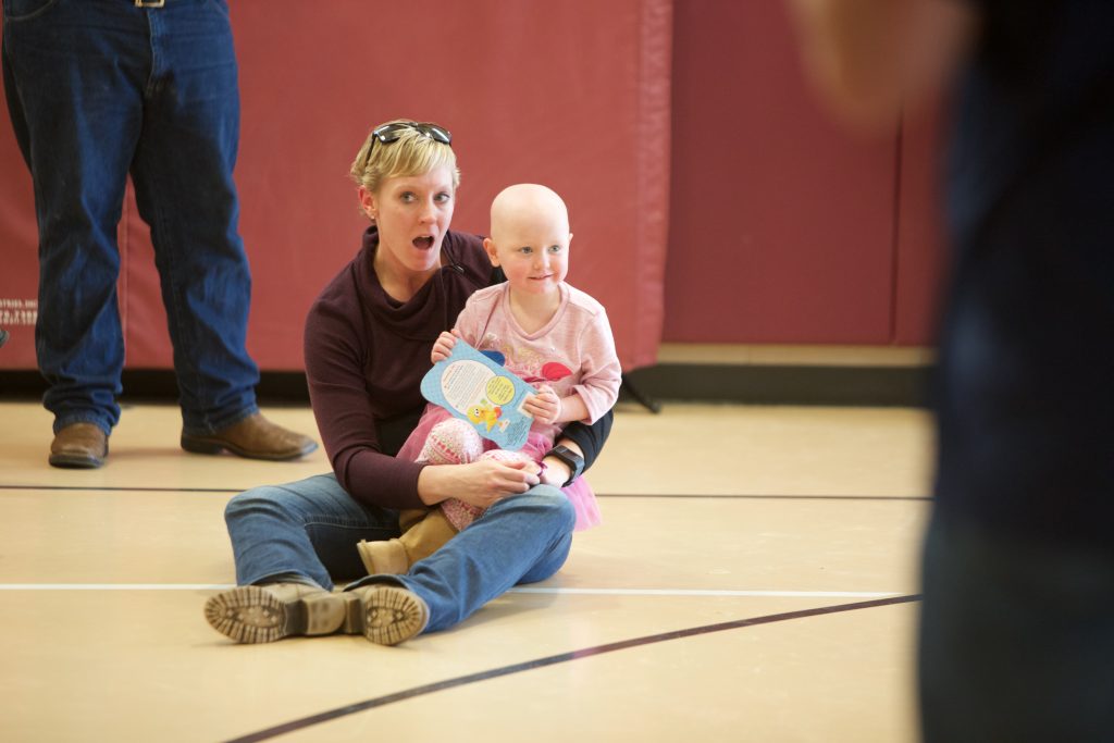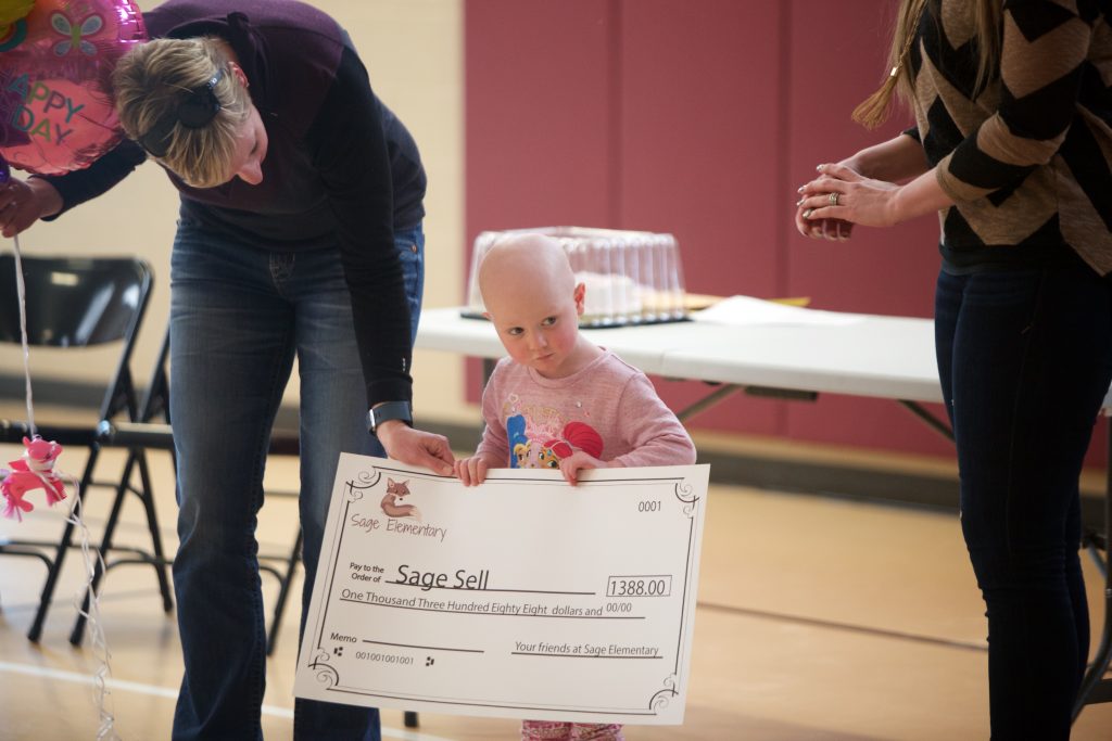 ROCK SPRINGS — Nary a dry eye remained in the gym at Sage Elementary School on Thursday afternoon as students and staff presented three-year-old Sage Sell and her mom, Arlene Sell, a check for $1,388.