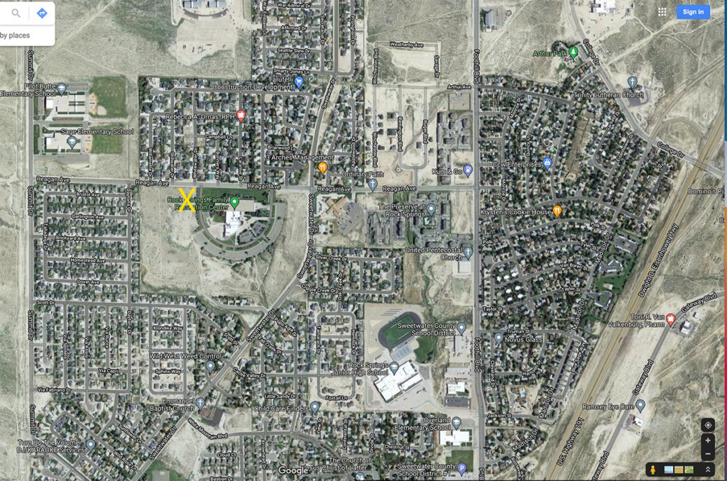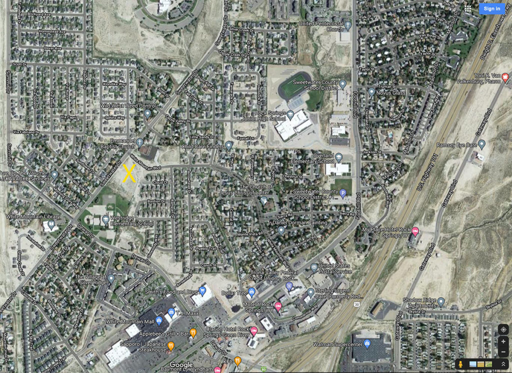- The vacant lot next to (west of) the Rock Springs Family Recreation Center across from Whitewater Drive