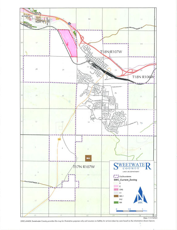 The 5-acre parcel is located between Green River and Jamestown. The land is highlighted in pink in the image below.