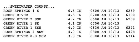 According to the United States National Weather Service Riverton Office, Rock Springs received 4 to 6 1/2 inches of snow from the storm earlier this week, while Green River saw close to 4 to 4 1/2 inches.