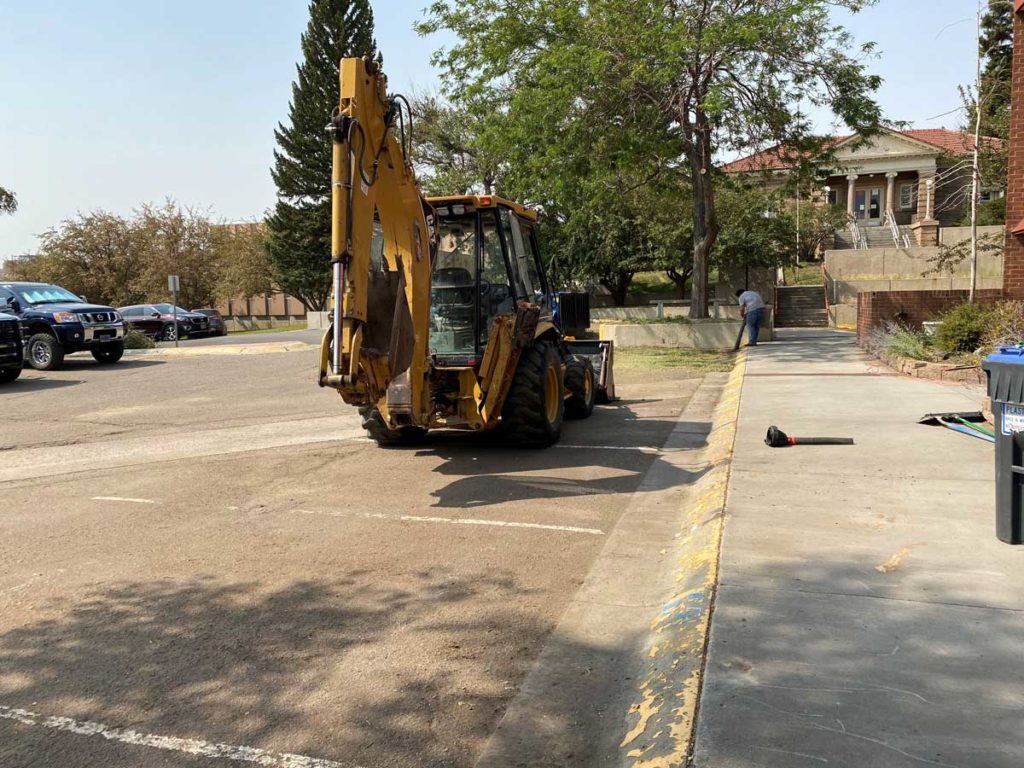 The front of Green River City Hall was cleaned up today by a group from the the Development Services Department with help from Yager Construction. Yager Construction donated the heavy equipment for the city to use.