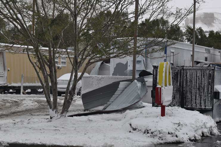 The pieces of the roofing could be found blown into the McDonald’s parking lot, and even all the way across the street to the Taco Bell and O’Reilly Auto Parts parking lots.