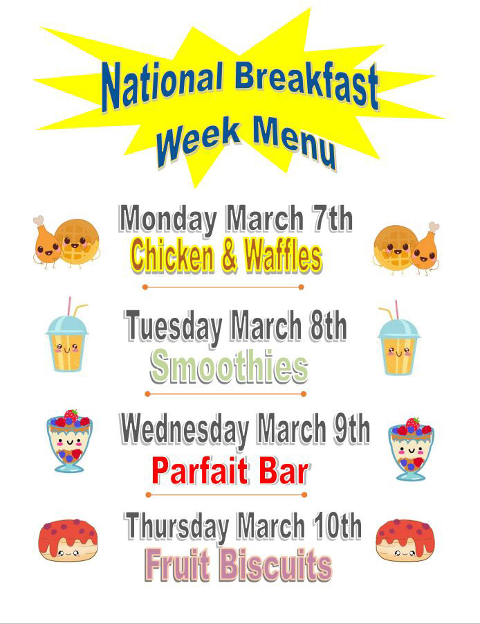 School nutrition professionals and students will be encouraged to show their enthusiasm for school breakfast from March 7-11 as the district celebrates NSBW with special menus, activities, and more.