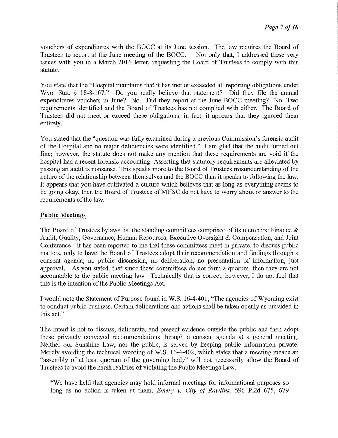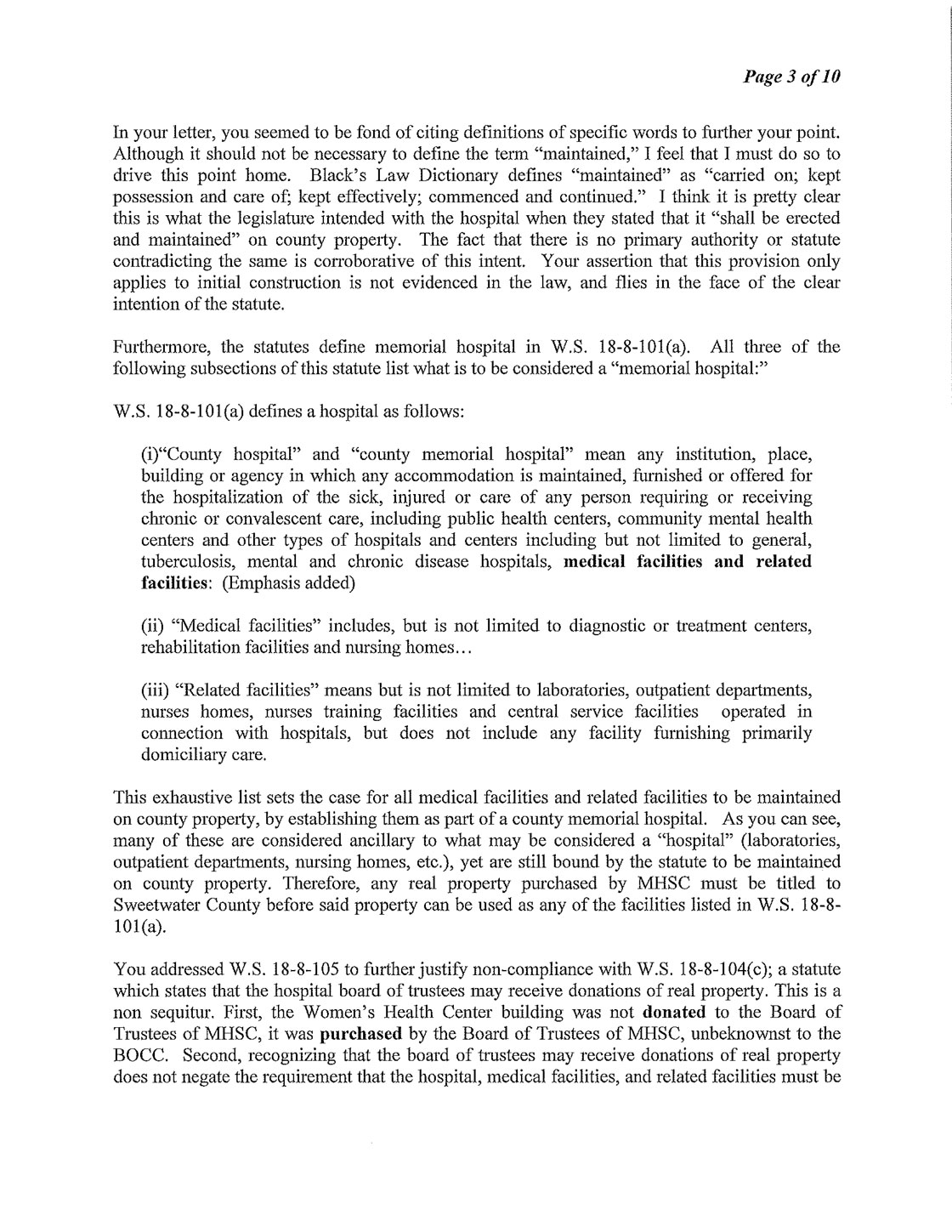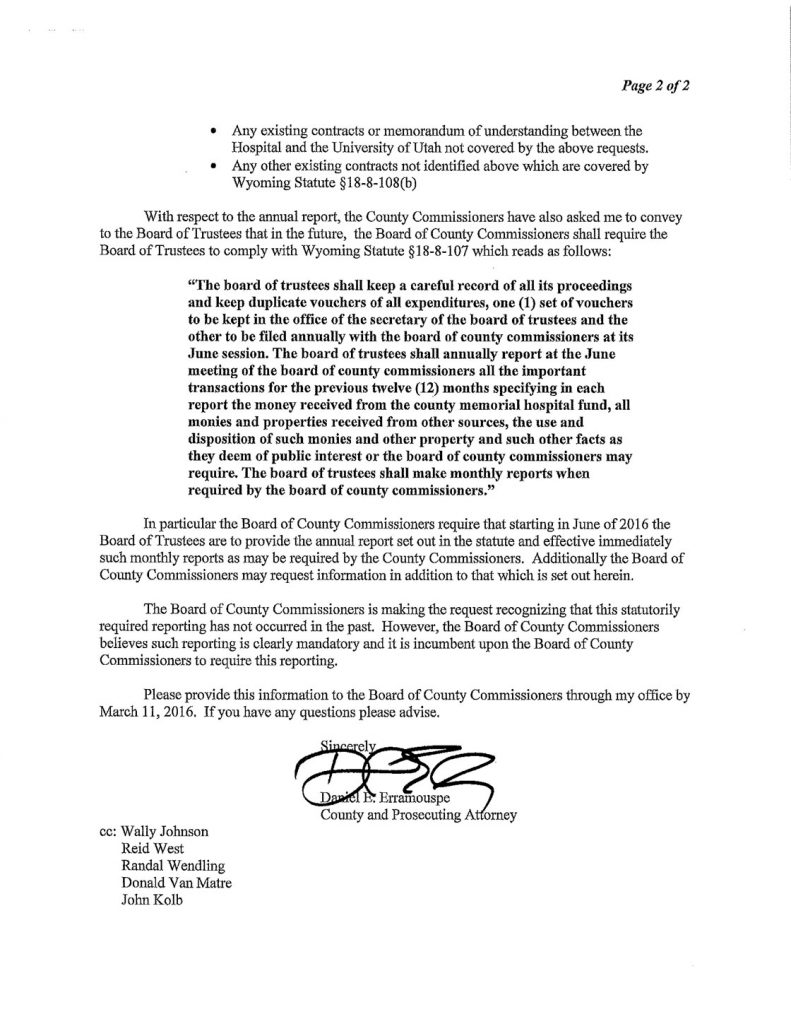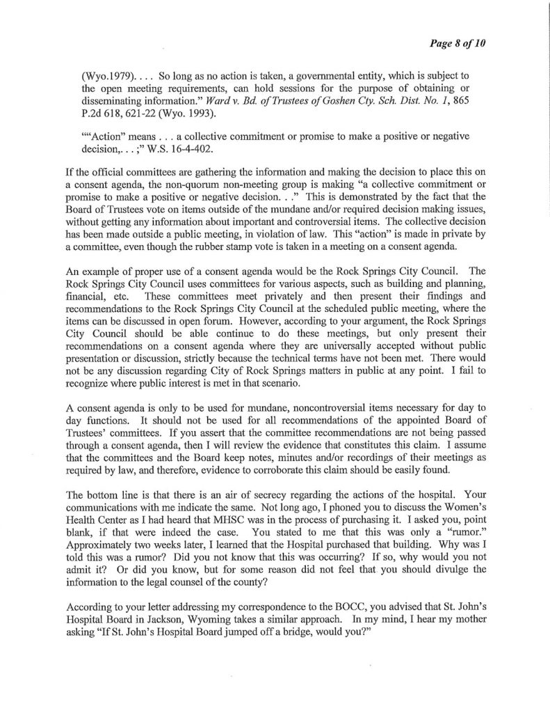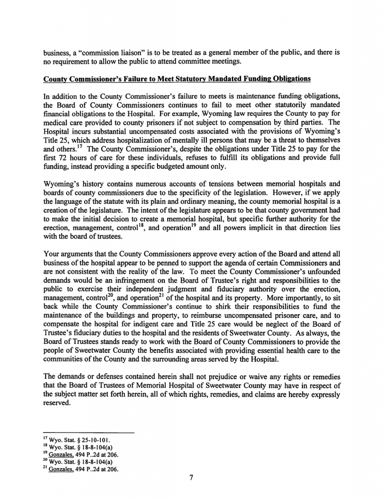 The Following is MHSC Attorney George Lemich’s response to Sweetwater County Attorney Daniel E. Eramouspe’s Original Opinion Letter Dated June 21, 2016