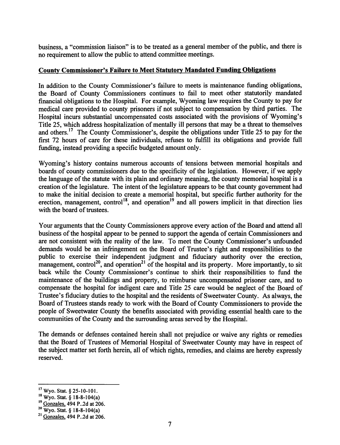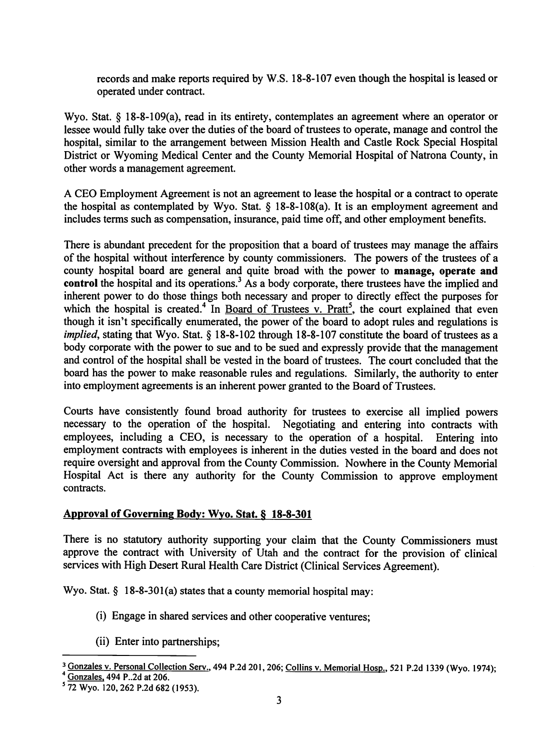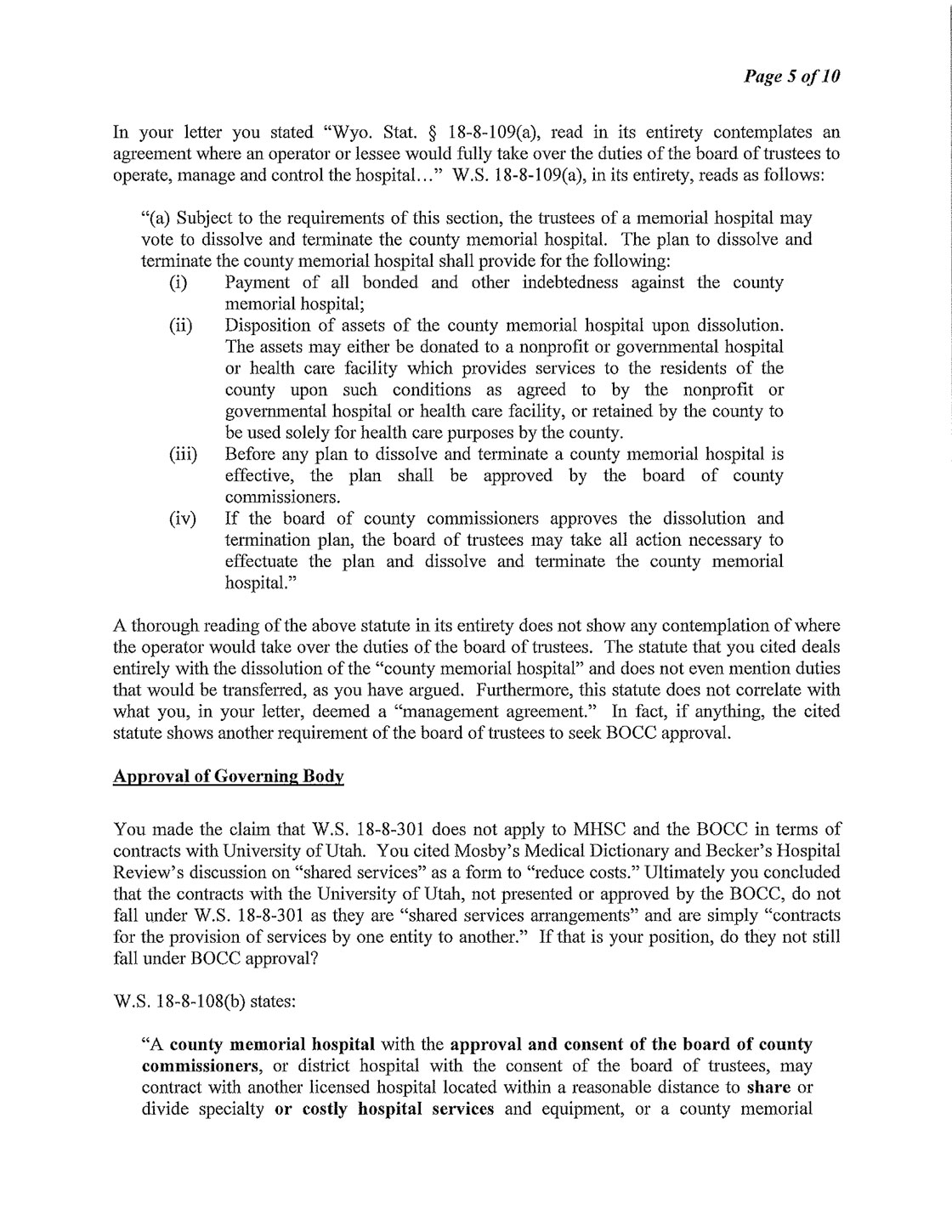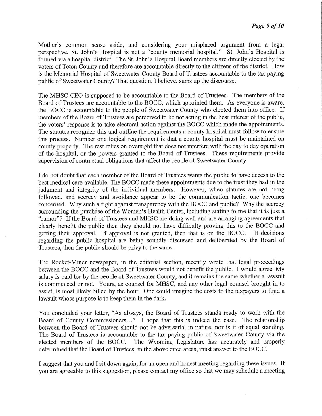 The Following is MHSC Attorney George Lemich’s response to Sweetwater County Attorney Daniel E. Eramouspe’s Original Opinion Letter Dated June 21, 2016