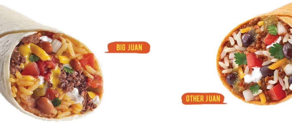 Refried beans, Spanish rice, seasoned ground beef, cheese, sour cream, picante sauce, and salsa fresca wrapped in a home-style flour tortilla.