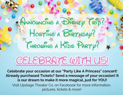 Upstage Theater Co. invites you to enjoy Party Like a Princess Live Concert! They will have a photographer, Authentic by Fitz Imagery.