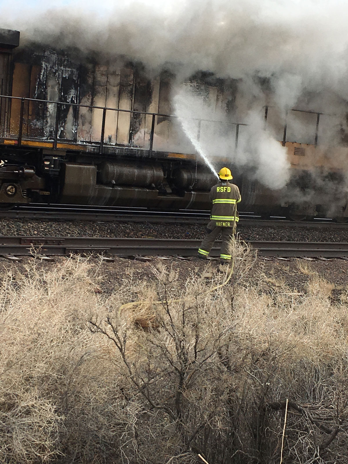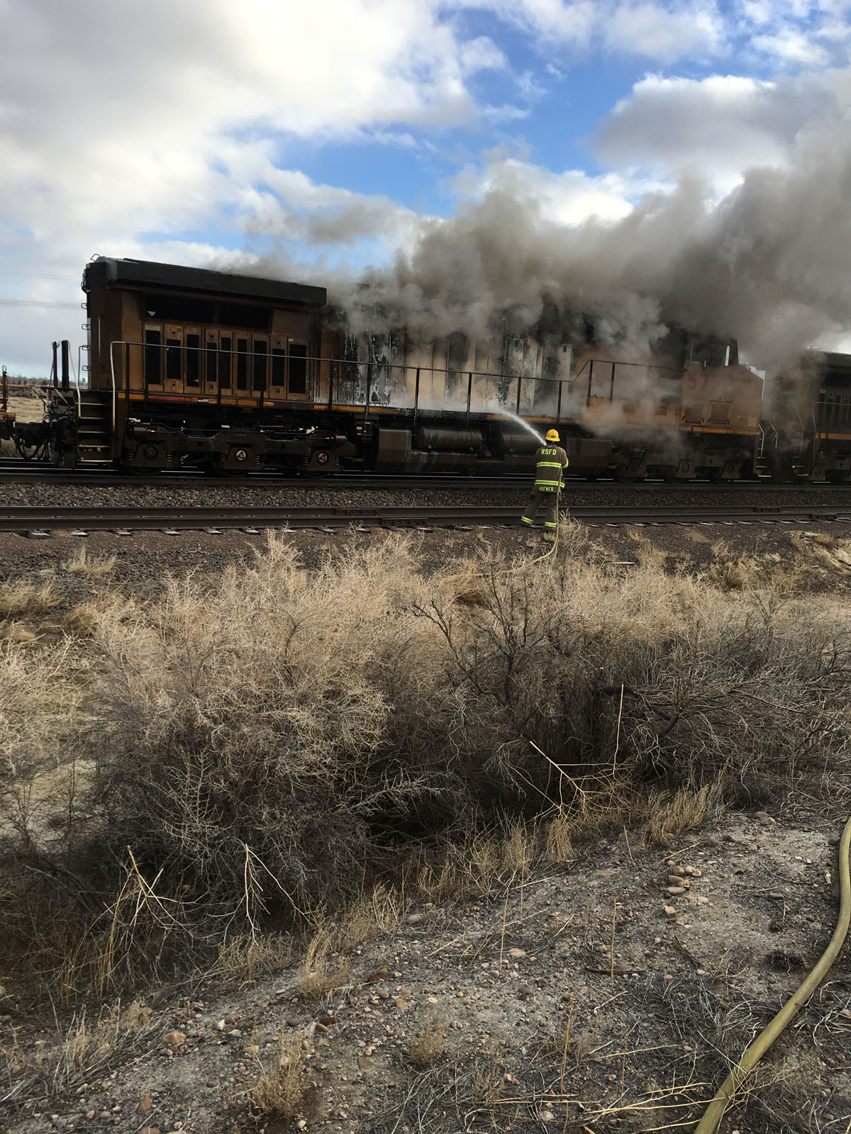 ROCK SPRINGS — The Rock Springs Fire Department responded to a report of a locomotive on fire on the west end of Rock Springs on Friday, April 13 at 06:48 am.