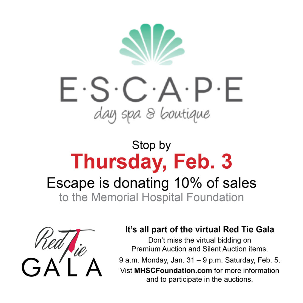 - Visit Escape Day Spa who will also be donating 10% of sales to the Gala.
