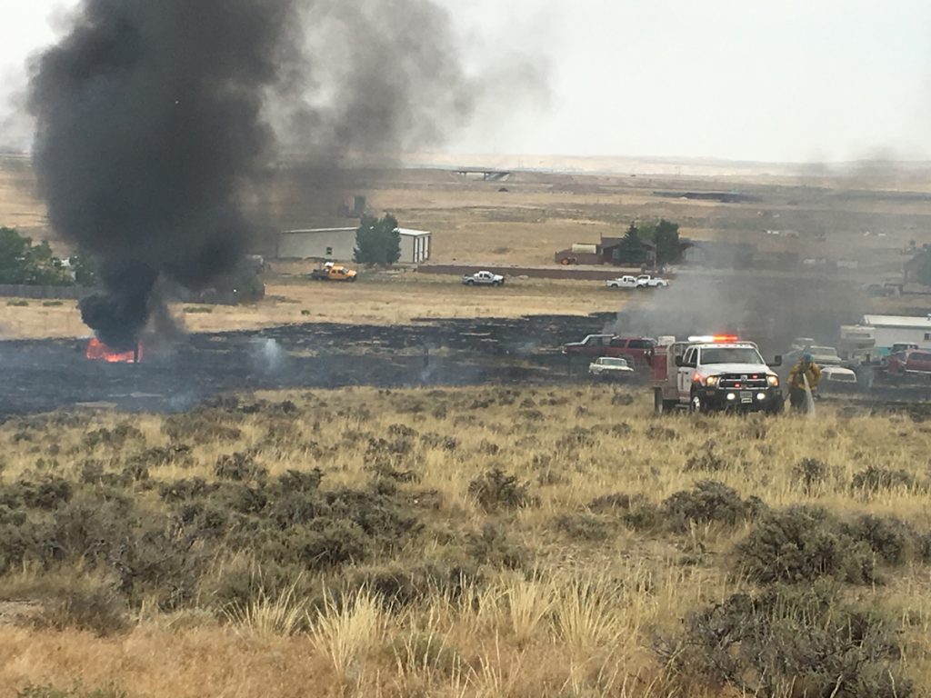 GRANGER — The Sweetwater County Fire Department, Green River Fire Department, Granger Fire Department, Uinta County Fire, and Bureau of Land Management fire crews responded to a fire just north of the Town of Granger shortly after noon today.