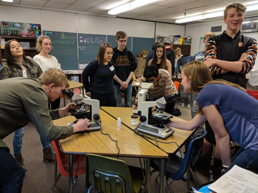 The team of undergraduate researchers created hands-on STEM learning experiences for Mrs. Apel and Ms. Jensen’s Physical Science, Biology and Environmental Science classes. The experience was centered on current research being done in Professor Watson’s lab.