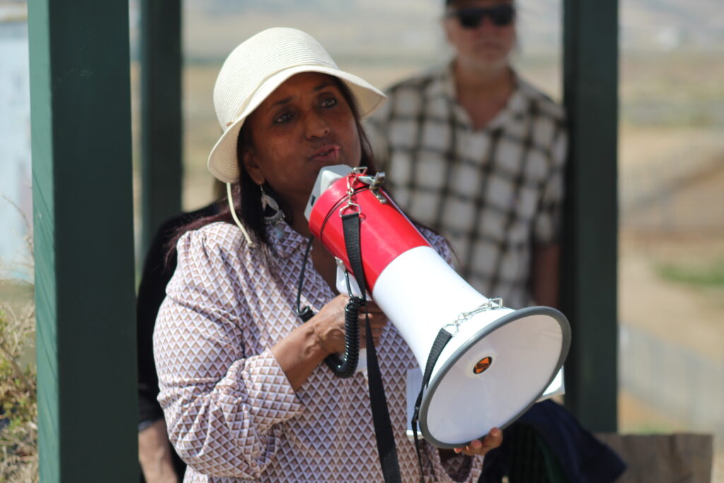 A group of protesters stood outside the wild horse containment facility Thursday afternoon and called for an end to the BLM’s horse gathering activities. Madhu Anderson, a local animal rights activist who has previously campaigned against the use of gas chambers at the Rock Springs and Green River animal control offices, said she witnessed low-flying helicopters harass horses during the roundup, referring to what the horses were subjected to as “cruelty.”