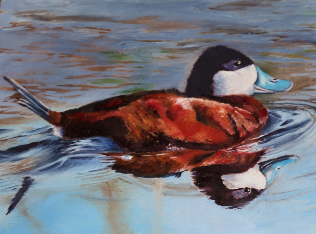 Wyoming’s 2018 Best of Show artwork, pictured below, is an oil paint rendition of a ruddy duck drake, titled “Ruddy Duck” by Kateri Bell, age 18, of Cody, WY.
