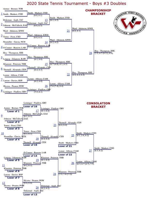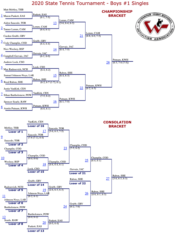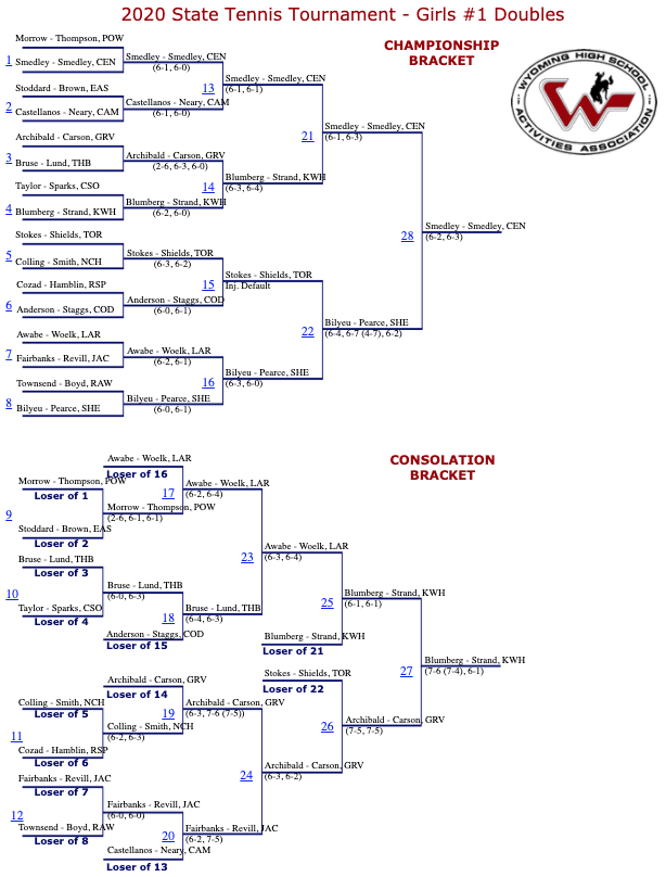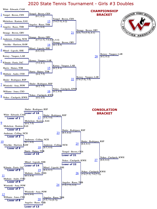 Below are full results from the 2020 state tennis tournament.