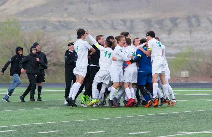 GREEN RIVER– The Green River High School boys soccer team is 4A West Regional Boys Soccer Champions after beating the Rock Springs High School Tigers 1-0 with a 5-3 shootout today.