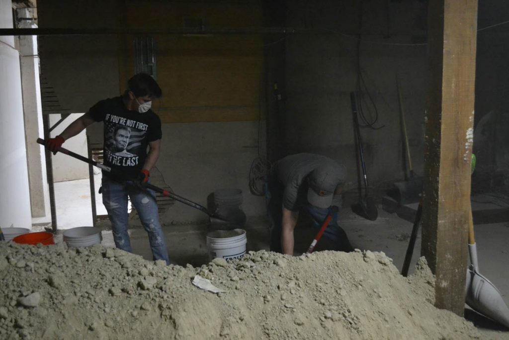 Dirt was piled into large mounds when the elevator shaft was dug out and constructed. The WWCC wrestlers helped to remove the dirt, which was the third round of removing dirt according to one of the Tomahawk owners Marty Carollo. The Green River High School track and field team has also helped remove dirt.
