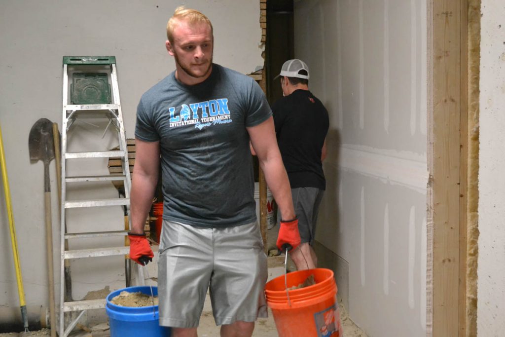 GREEN RIVER– The Western Wyoming Community College wrestling team helped out at the Tomahawk Hotel in Green River on Thursday, April 25, as construction will start soon to put in an elevator.