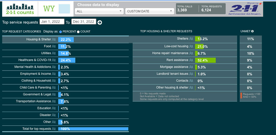 Not only does Wyoming 211 answer phone calls and provide help to those seeking it, they keep track of data and statistics so they know what areas each county is asking about. Looking at the data gives them a better idea of where resources might be lacking.
