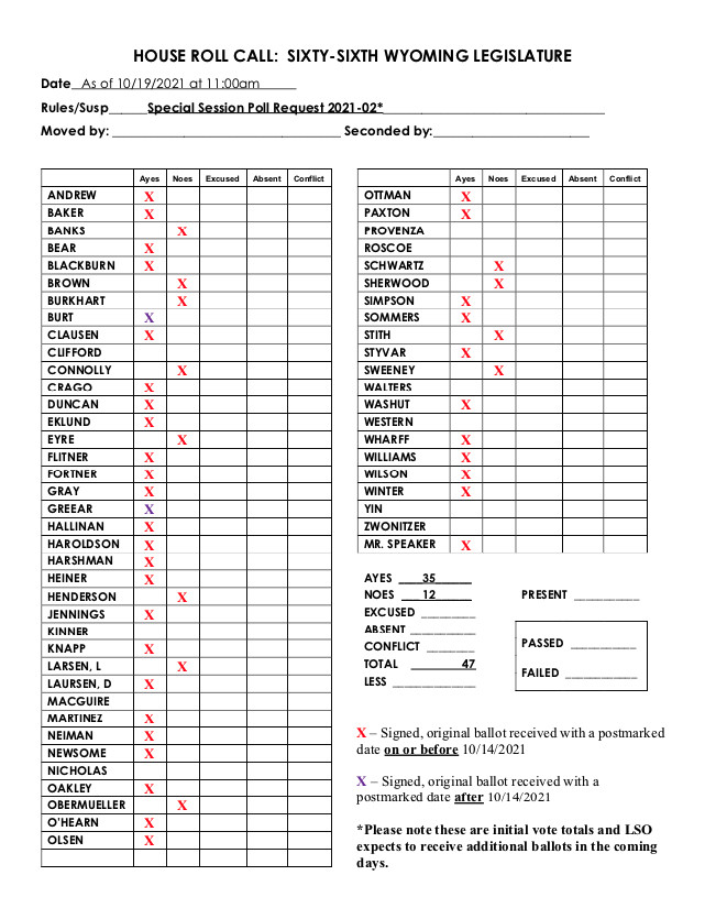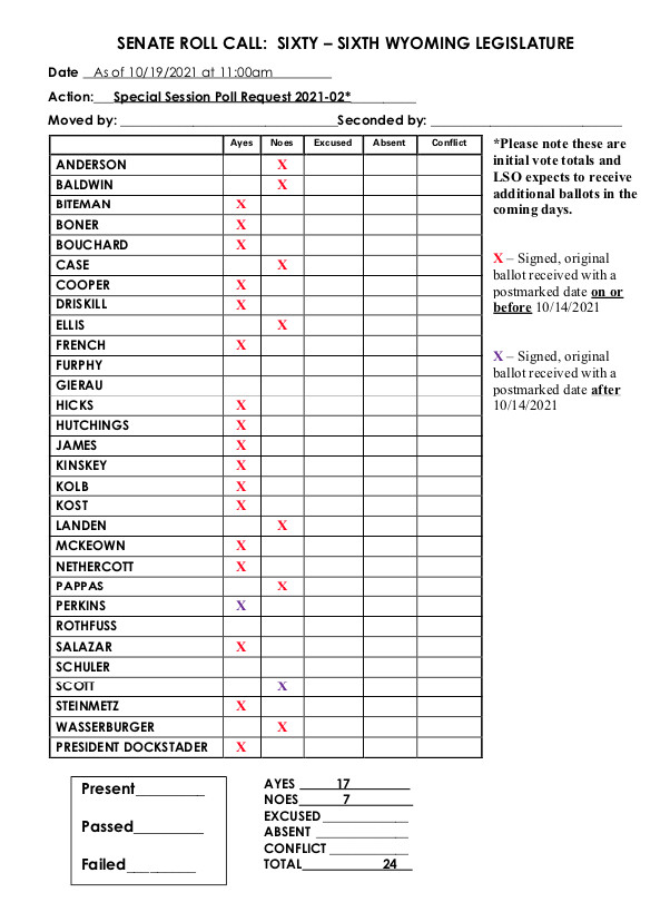 CHEYENNE — Senate President Dan Dockstader and Speaker of the House of Representatives Eric Barlow have received a sufficient number of affirmative votes from a recent written poll of the members of the 66th Wyoming Legislature to convene a special session.