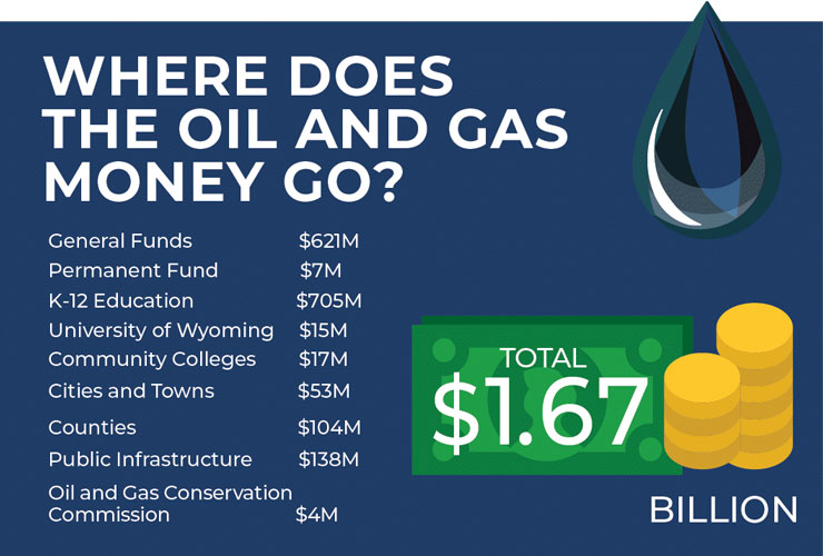 The money paid by the oil and natural gas industry offsets the costs of government services like public education and infrastructure. In 2019, industry contributed $705 million to public education, $621 million to the state general fund and $157 million to cities, towns, and counties around the state.