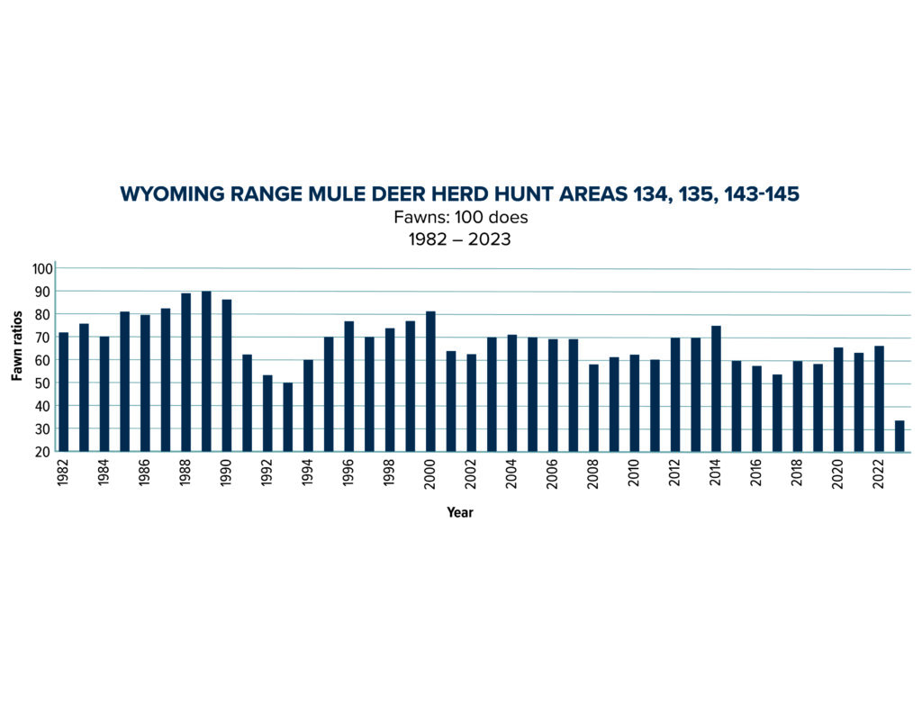 Recovery of the Wyoming Range mule deer herd will depend on a multitude of factors, but the most important factor will be Mother Nature. Consecutive years of favorable weather patterns will be critical components for the deer herd’s recovery.