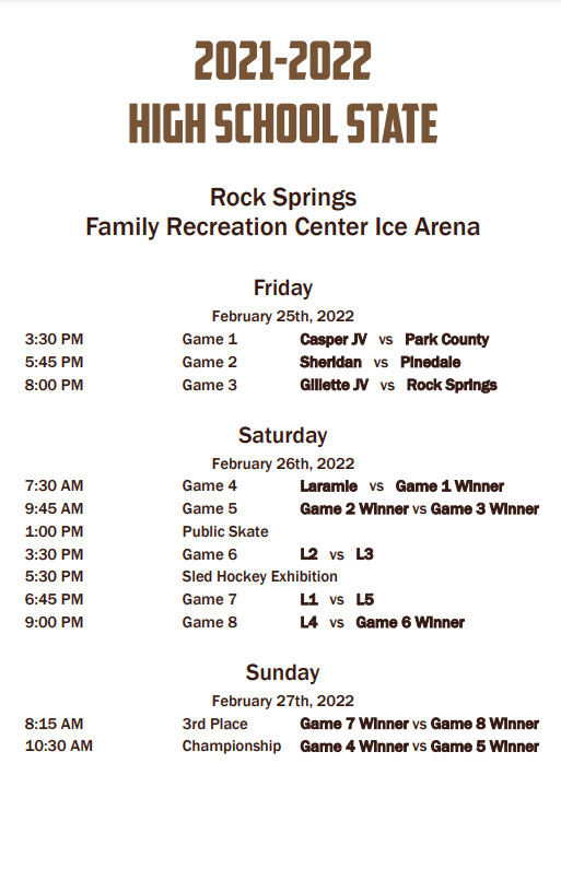 ROCK SPRINGS — The Wyoming State High School Hockey Tournament is taking place this weekend at the Family Recreation Center’s Ice Arena.