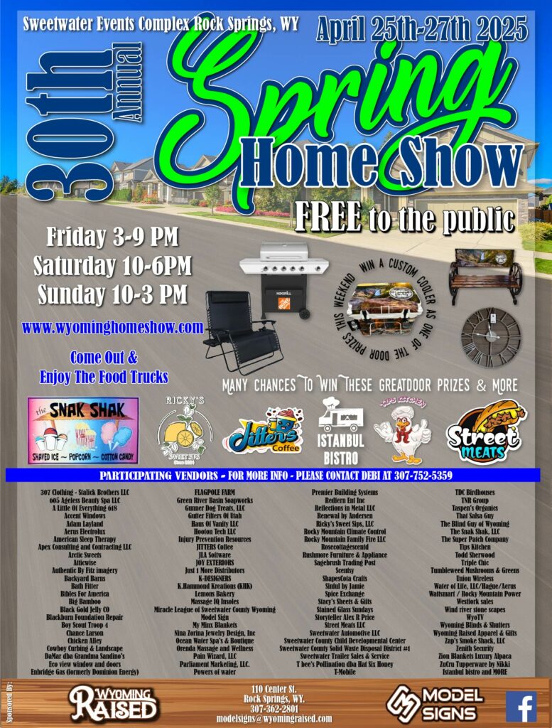 There will be over 100 booths to visit. Explore many businesses and discover what they can offer for your home. Everything from furniture, contractors, windows, doors, hot tubs, and so much more! Get ready to win amazing door prizes. Food and bake goods from The Snak Shak Ricky’s Sweet Sips, Jitter’s Coffee, Istanbul Bistro, Tip’s Kitchen and Street Meats.